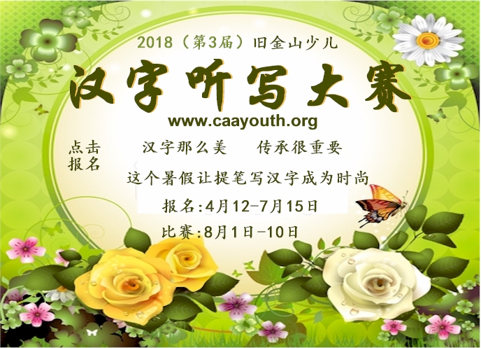 2019年再见! 2018(第3届)旧金山少儿汉字听写大赛启动报名-免费培训起步