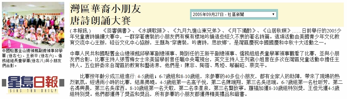 2005少年儿童唐诗诵读大赛-星岛日报