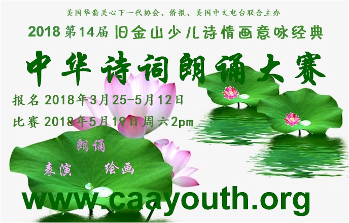 ************************************************************************************************* 2018(第14届)旧金山少儿中华诗词朗诵大赛启动报名
