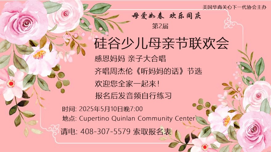 进入决赛选手邀请参加2025硅谷少儿母亲节联欢会亲子大合唱