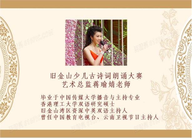 为帮助孩子们提升朗诵水平,更好地传递诗词之美,朗诵艺术名师蒋瑜婧老师朗诵技巧指导课(Optional),报名:408-307-5579